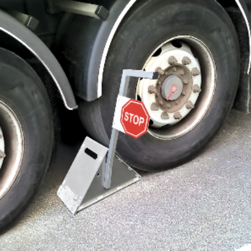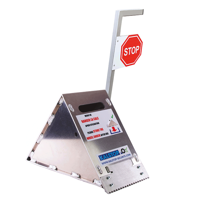 Notre cale se glisse sous la roue et retient le poids-lourd (petit ou gros porteur) à quai et empêche le départ intempestif de celui-ci, évitant ainsi la chute du cariste et de son chariot élévateur.